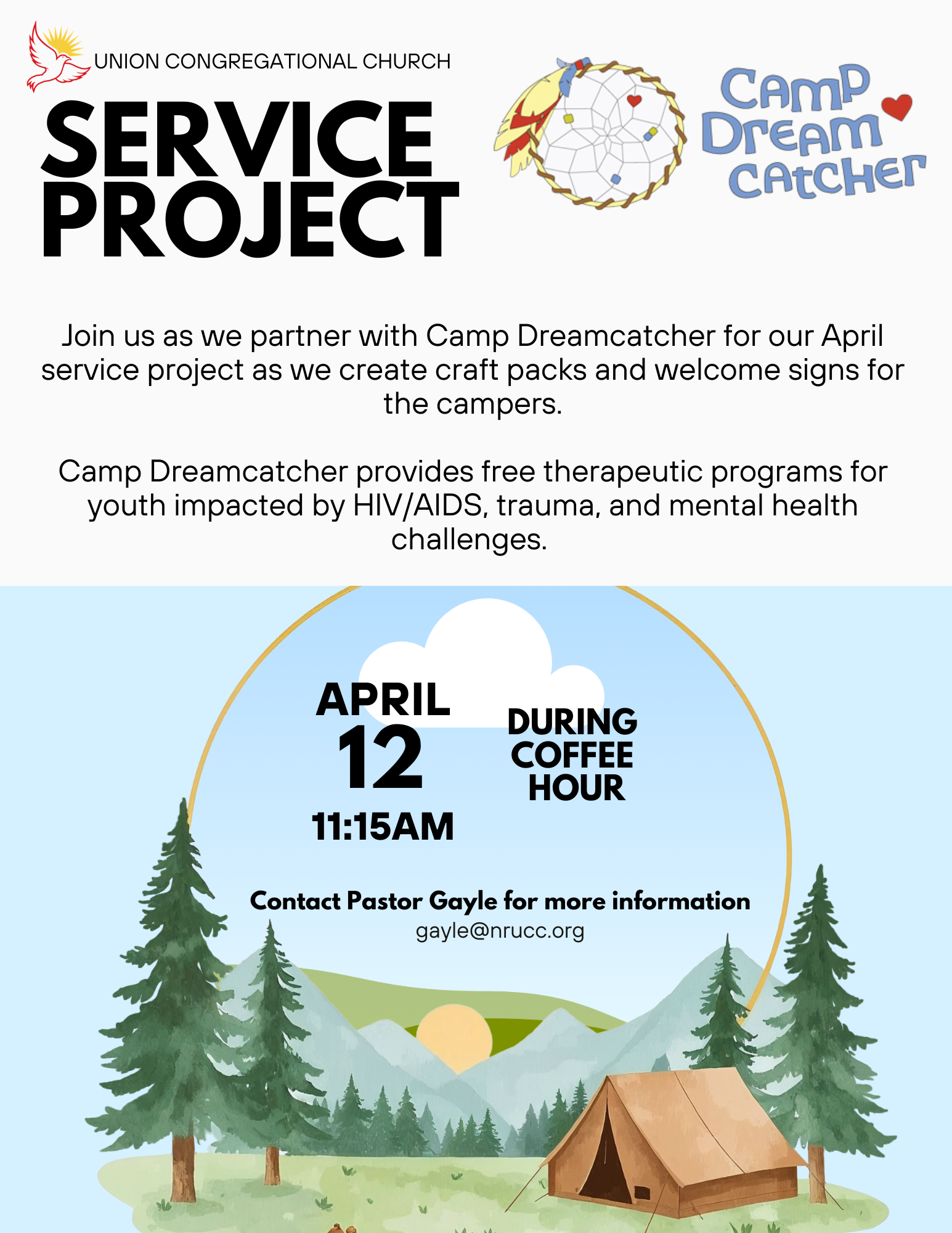Join us as we partner with Camp Dreamcatcher to make craft packs and welcome signs for campers.